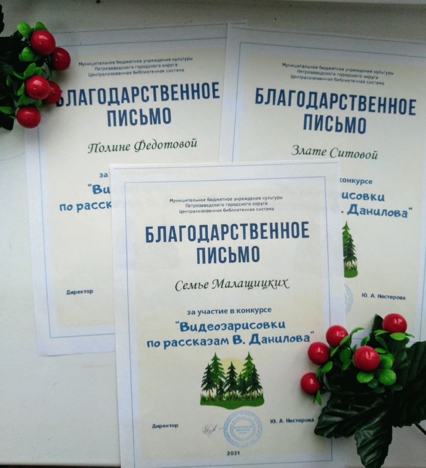 ЦБС РК (детские библиотеки) - наш социальный партнер благодарит участников от нашего сада, которые приняли участие в конкурсе видеозарисовок по рассказам В.Данилова.