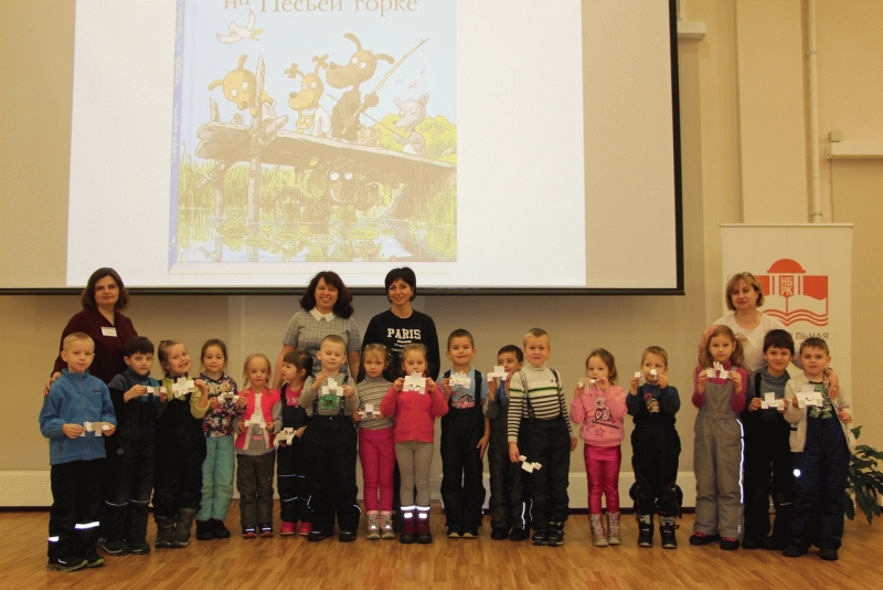 После небольшой экскурсии по библиотеке ребят ждало занятие в рамках проекта «Современные сказки по-добрососедски. Маури Куннас». Маури Куннас – современный финский писатель и художник, книг которого очень много в Национальной библиотеке. На занятии ребята подробно знакомились с серией о приключениях собак на хуторе «Песья горка», имели возможность рассмотреть другие книги и показать друг дружке самые забавные картинки. Напоследок каждый смастерил собственного бумажного щенка и проверил, насколько быстро он бегает.