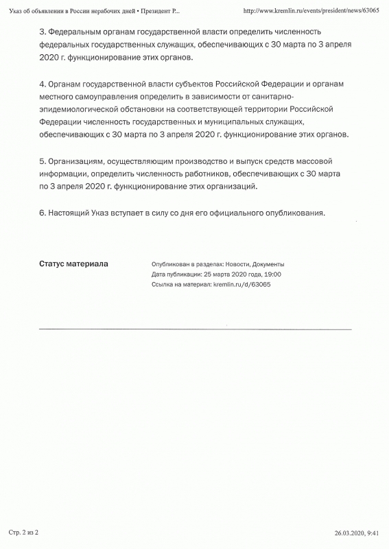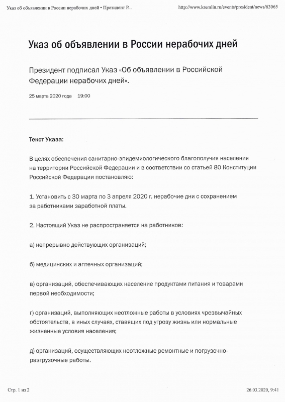 В связи с Указом Президента Российской Федерации на следующей неделе