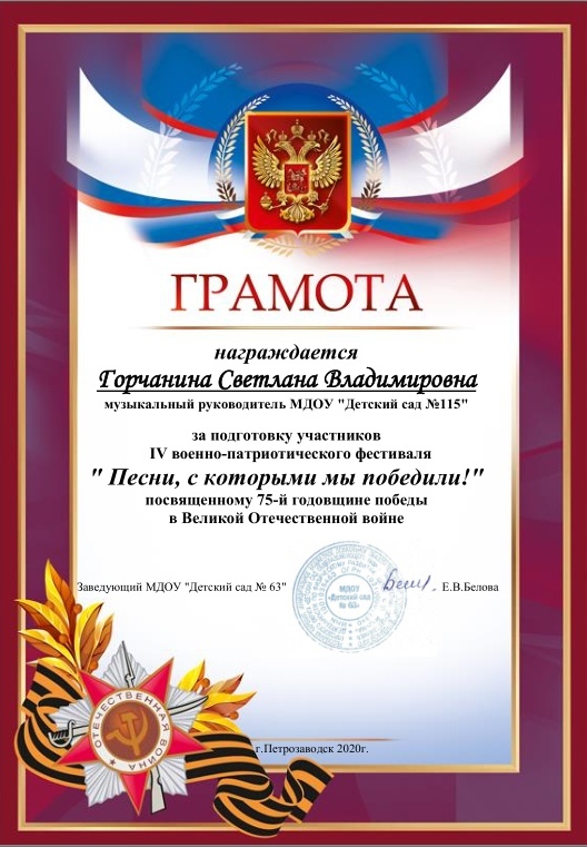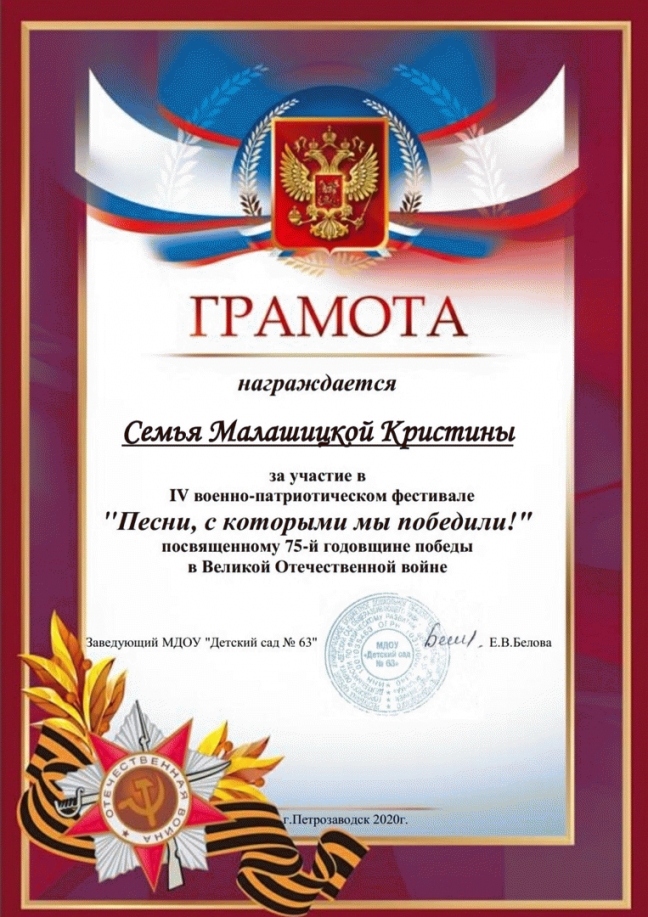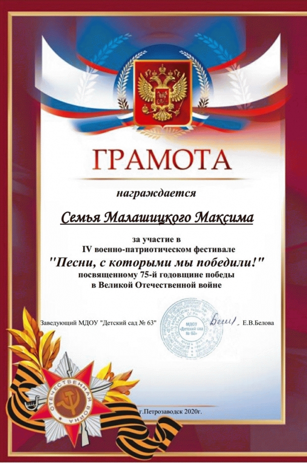 В МДОУ "Детский сад №63" проходил IV военно-патриотический фестиваль "Песни, с которыми мы победили!", посвященному 75-й годовщине победы в Великой Отечественной войне.