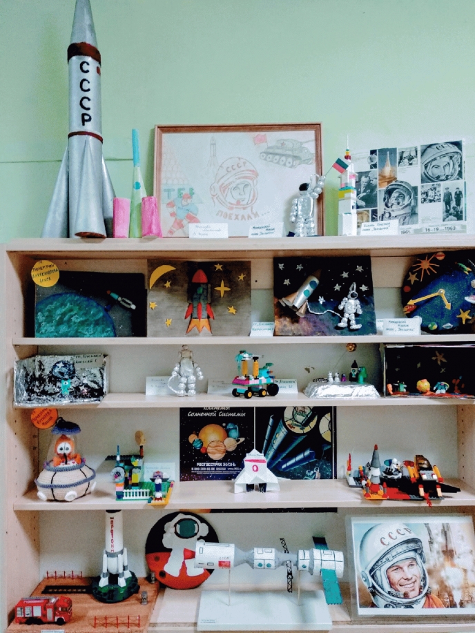Педагоги, родители и воспитанники смастерили поделки, посвященные космосу. Изумительные, в творческом плане, получились композиции. Фантазия и нестандартное мышление проявилось в изготовлении этих шедевров. Все большие МОЛОДЦЫ!