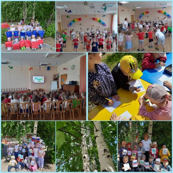 12 июня -День России- государственный праздник, символизирует свободу и единение нации. В преддверии этого события в детском саду ребята просмотрели фильмы о России, играли в русские народные игры, танцевали и рисовали символы нашей страны.