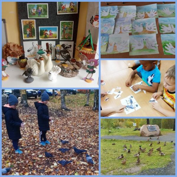 Подводим итоги: наблюдали за птицами и осенними изменениями на участке детского сада, наблюдали и фотографировали птиц на прогулке с родителями, рисовали и собирали птиц, читали книги о самых - самых животных, пополнили центр экологии.