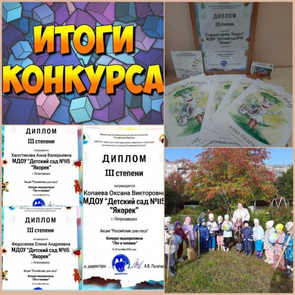 Эколята старшей группы " Радуга" стали победителями городского конкурса видеороликов "Правила поведения в лесу". (3 место). Ребята участвовали в экопрогулке в лесной парк и поделились своими впечатлениями с конкурсантами. Подготовительная группа " Бусинки" представила свой видеоотчет по теме "Берегите планету" и завоевала 2 место!!! Поздравляем наших эколят с победой!