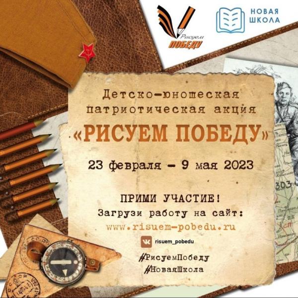 Министерство образования и спорта Республики Карелия информирует о проведении патриотической акции «Рисуем Победу». Конкурсные работы можно загрузить в дистанционном формате через официальный сайт Акции www.risuem-pobedu.ru в срок о 1 мая 2023 года. Итоги Акции будут подведены 9 мая 2023 года. Более подробная информация об Акции размещена на официальном сайте https://risuem-pobedu.ru.